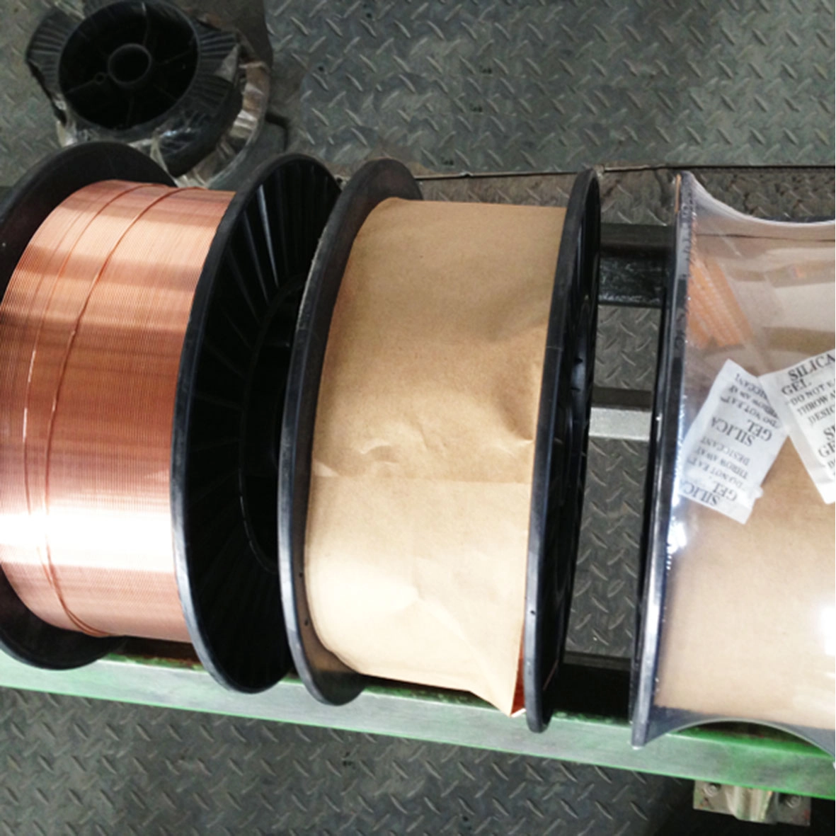 These MIG wires are commonly packaged on **plastic spools** (typically S200 for 10-12lb, S300 for 33lb, S360 for 44lb) for standard welding machines. For high-volume industrial use, they are also available in large **coils or drums/pails** (e.g., 500lb, 1000lb) to reduce changeover time and enhance productivity. The packaging ensures protection from contaminants. It's critical for **wire integrity and handling**.
